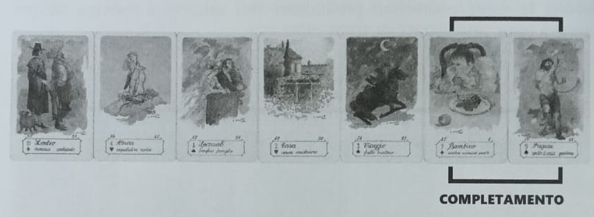 Cărțile sunt poziționate la timpul trecut 6, este ușor de înțeles că faptul, în momentul consultării, deja se întâmplase. Cartea din centrul lecturii - Căsătorie - a confirmat începutul unei noi relații romantice pentru Luca. Întâlnirea s-a încheiat anunțând că în viitorul apropiat relația va avea evoluții importante, luând caracteristicile unei conviețuiri reale, indicate de combinația cărților Casă + Călătorie și confirmate și de tripticul central Dragoste + Căsătorie + Casă.