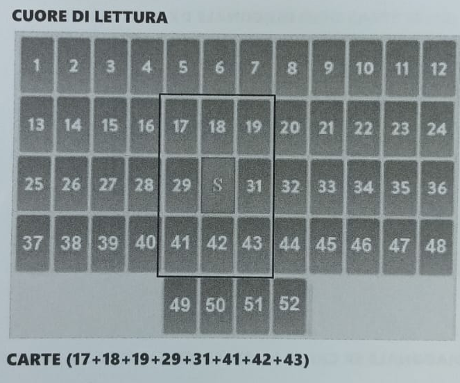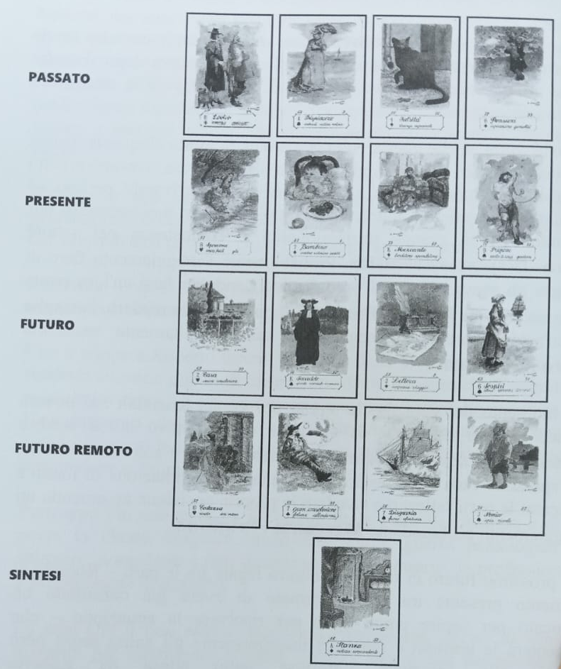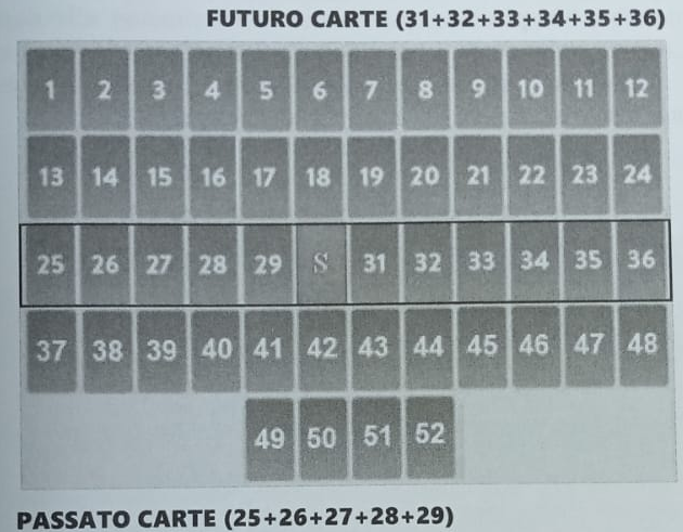 Acest tip de prezentare, cu practica, este capabil să ofere răspunsuri aprofundate și extrem de precise, relatând în detaliu detalii și nuanțe. Prin urmare, invit cititorul să asimileze metodologia conform schemei ilustrate pe pagina opusă. Cartonașe (1+2+3+4): Acestea indică trecutul care i-a adus pe consultanți în situația actuală.