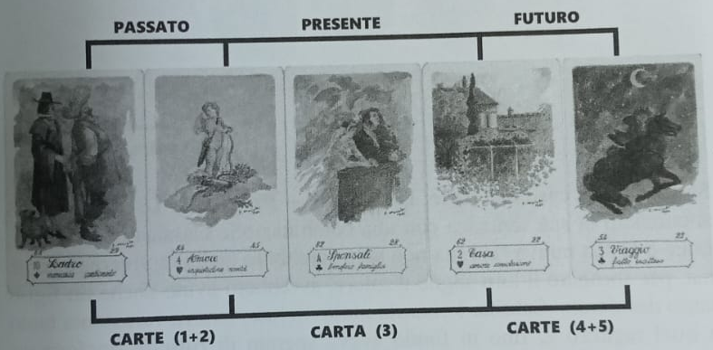 Cărțile sunt poziționate la timpul trecut 6, este ușor de înțeles că faptul, în momentul consultării, deja se întâmplase. Cartea din centrul lecturii - Căsătorie - a confirmat începutul unei noi relații romantice pentru Luca. Întâlnirea s-a încheiat anunțând că în viitorul apropiat relația va avea evoluții importante, luând caracteristicile unei conviețuiri reale, indicate de combinația cărților Casă + Călătorie și confirmate și de tripticul central Dragoste + Căsătorie + Casă.
