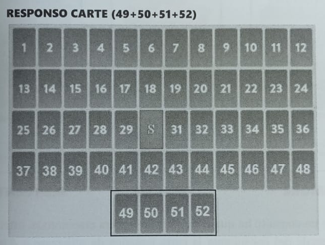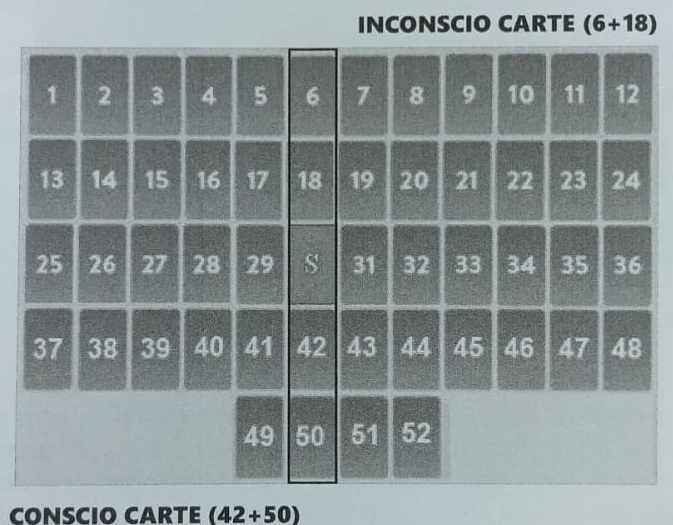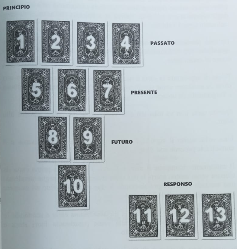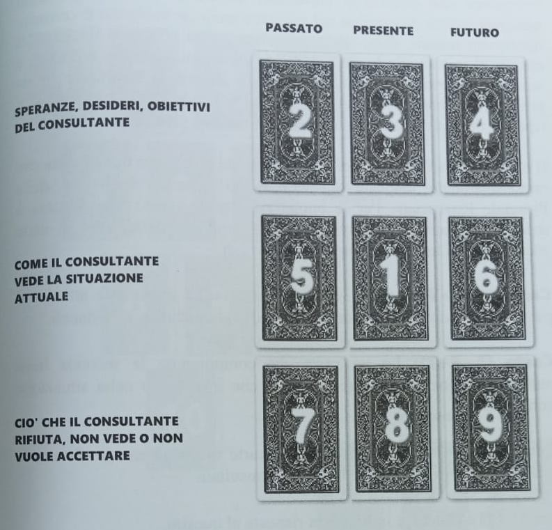 Acest tip de prezentare, cu practica, este capabil să ofere răspunsuri aprofundate și extrem de precise, relatând în detaliu detalii și nuanțe. Prin urmare, invit cititorul să asimileze metodologia conform schemei ilustrate pe pagina opusă. Cartonașe (1+2+3+4): Acestea indică trecutul care i-a adus pe consultanți în situația actuală.