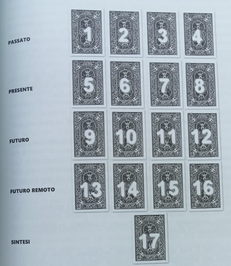 Alegând semnificatorul Negustor, am început să amestec cărțile, invitându-l pe Roberto să se concentreze cu atenție asupra întrebării puse, după tăiere am început în sfârșit să așez cărțile. Cititorul va găsi distribuția pe pagina următoare.