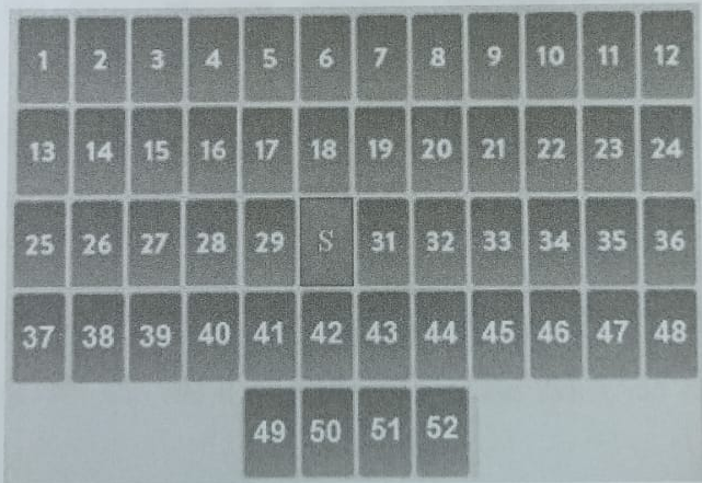 Cărțile trebuie aranjate pentru a crea patru rânduri de câte douăsprezece cărți fiecare, plus un rând terminal de câte patru cărți, conform schemei de mai jos.